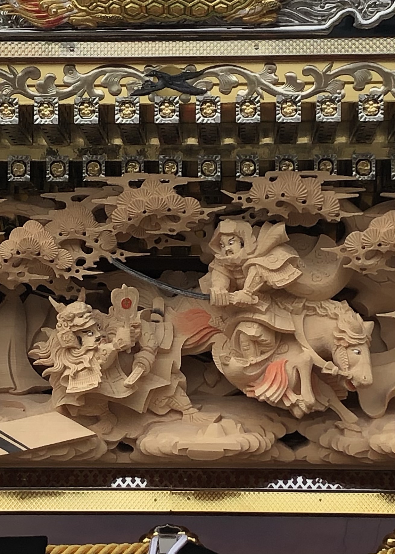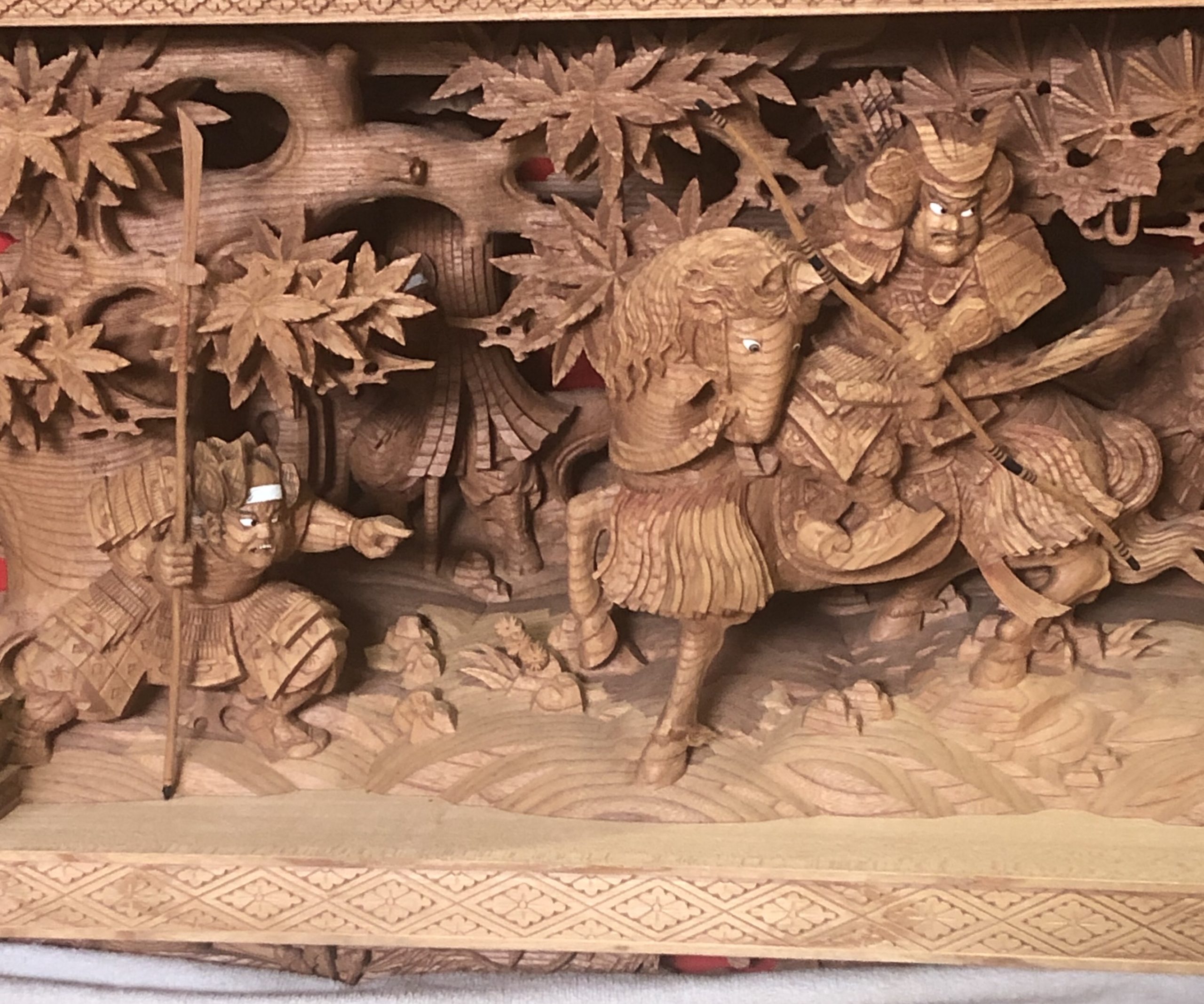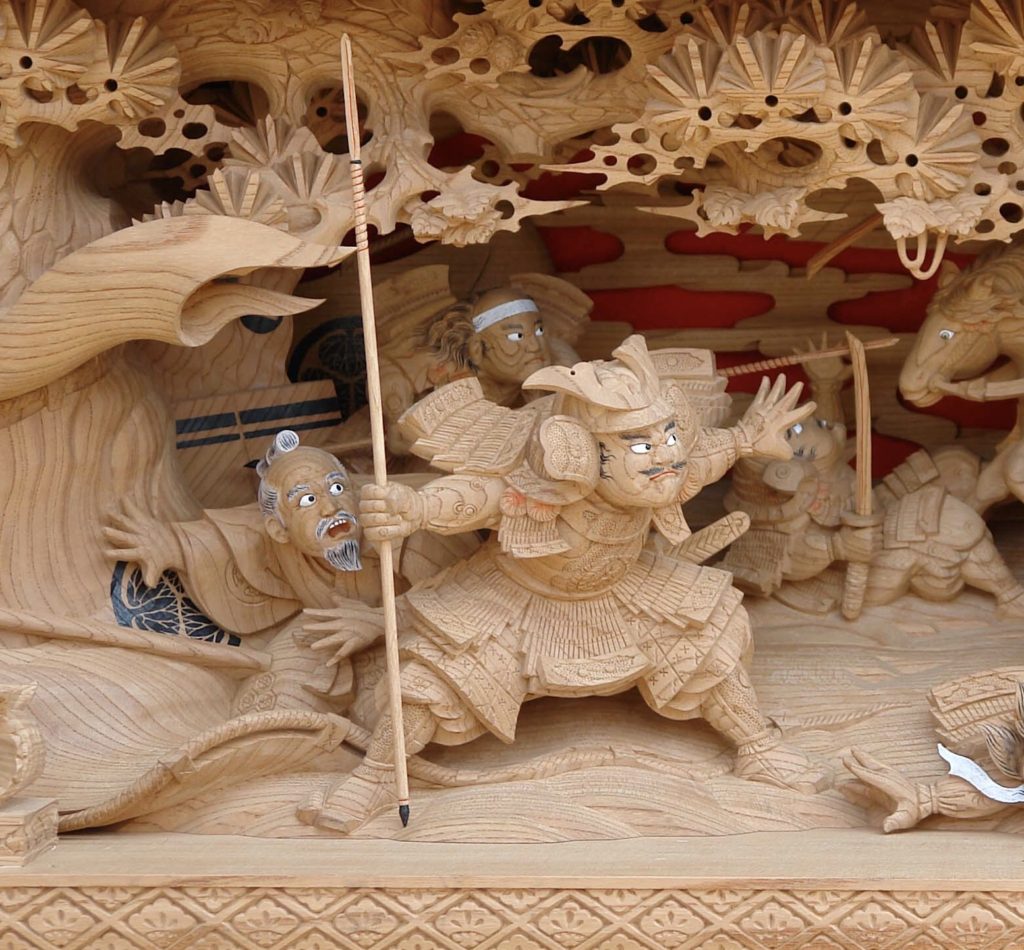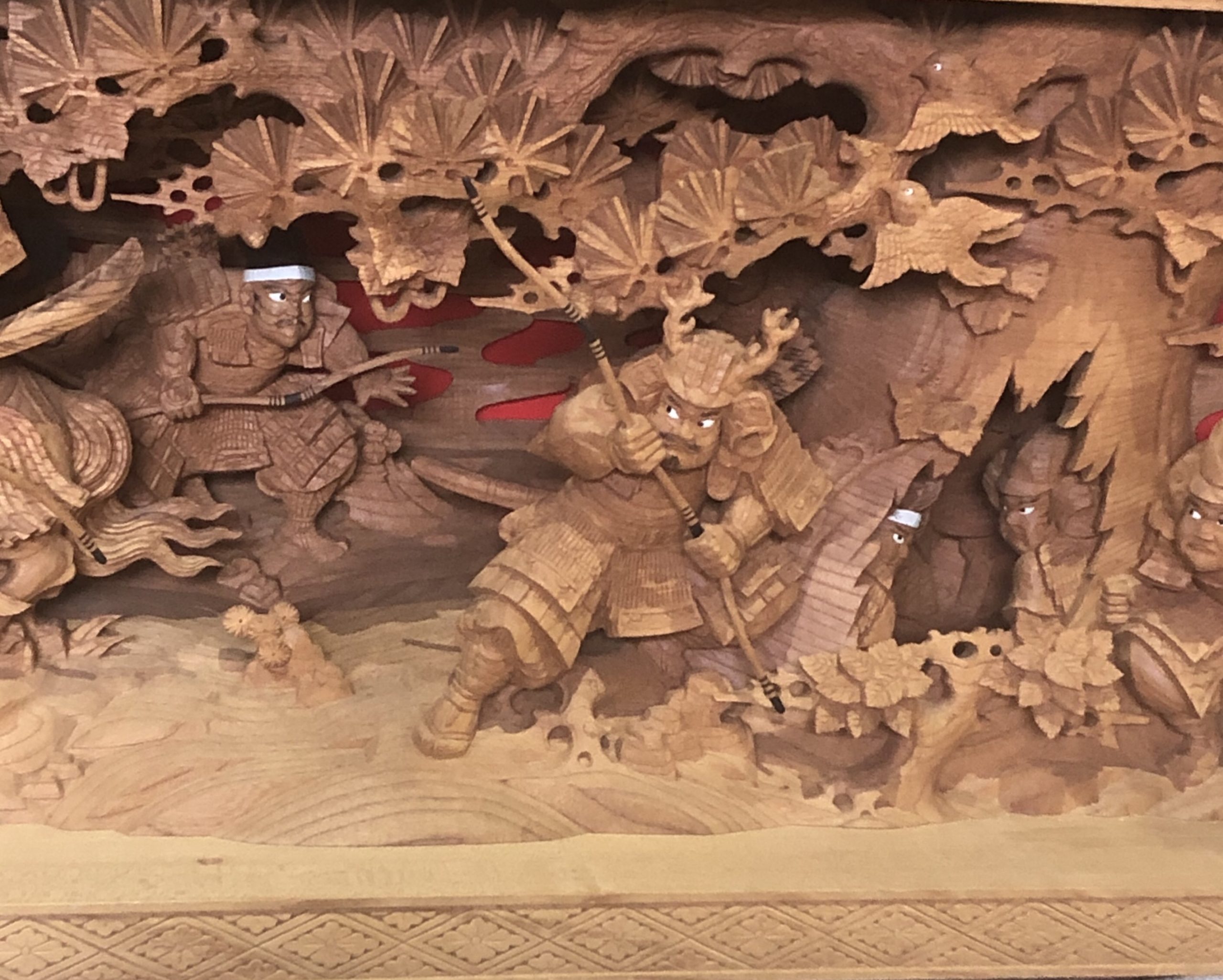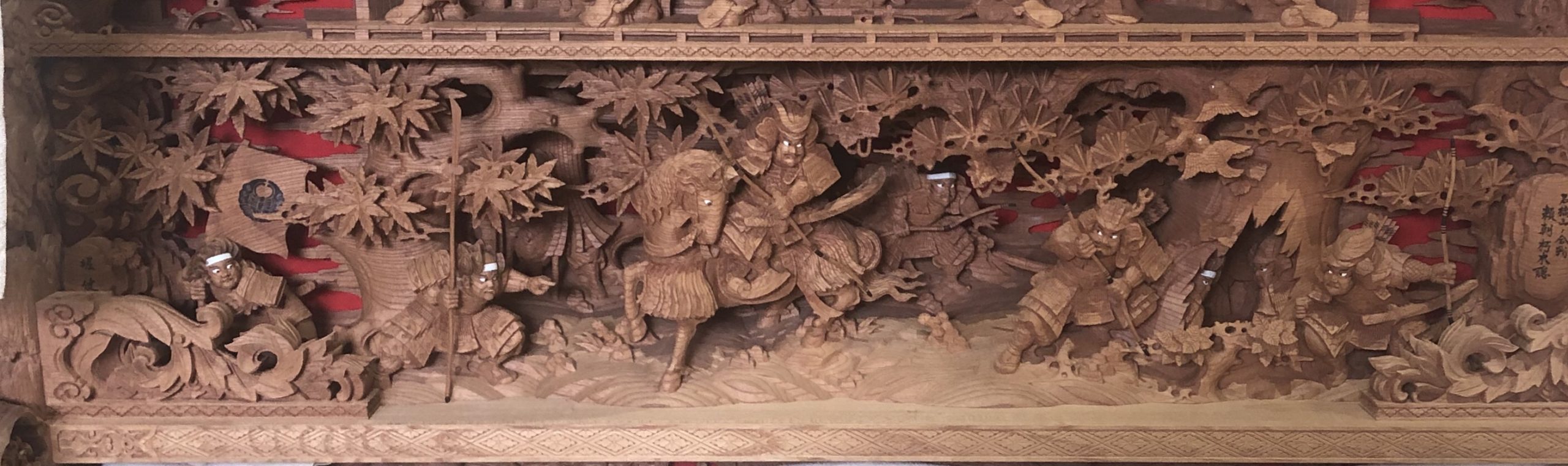 作品紹介 大阪市城東区鴫野 西勝寺 内陣欄間 岸和田市 上松町 左平土呂幕 真田幸村 家康本陣に突入す 泉大津市 豊中町 左平土呂幕 塙団右衛門 樫井合戦 堺市 八田南之町 右平土呂幕 木曽山中合戦 兵庫県 平野區 正面土呂幕 熊谷直実 敦盛呼び戻す 熊取町 小垣外 左平土呂幕石橋山ノ合戦 頼朝朽木隠 泉大津市 元町 正面土呂幕 勇婦巴御前 姫路市飾磨 城南町 挟間 川中島の戦い 真田幸村 岸和田市 流木町 主枡合 七福神レリーフ 姫路 英賀宮町東 露盤 本町南 狭間 右 本町南 狭間 正面 本町南 狭間 後 本町南 狭間 左 元町 獅噛み
