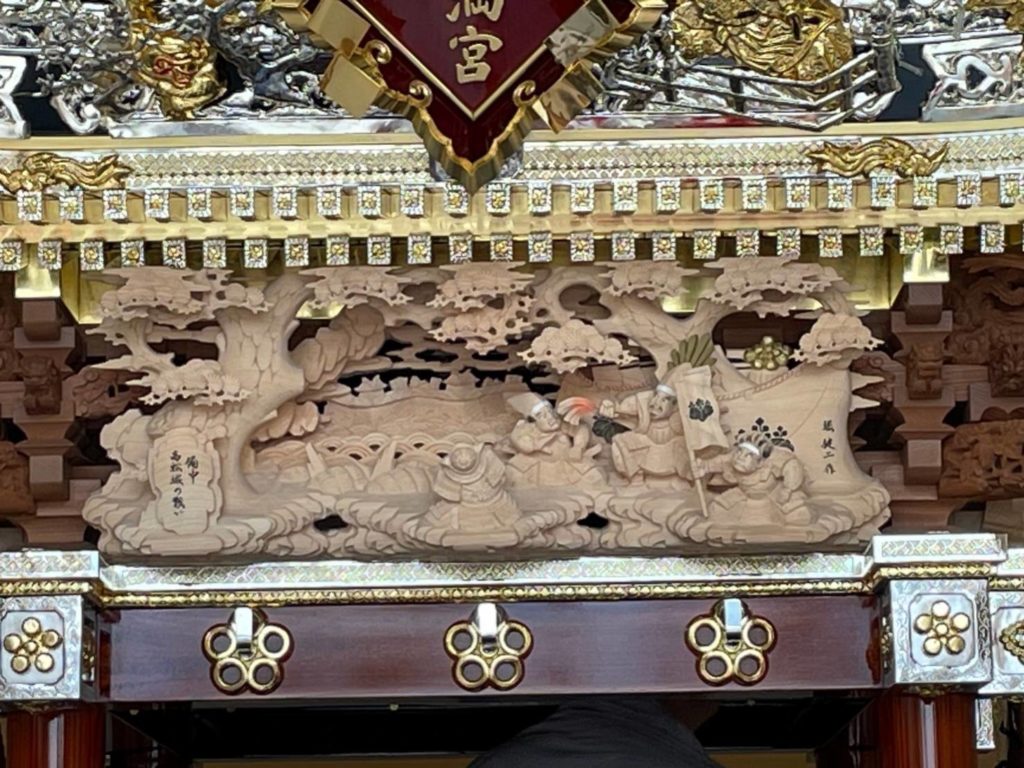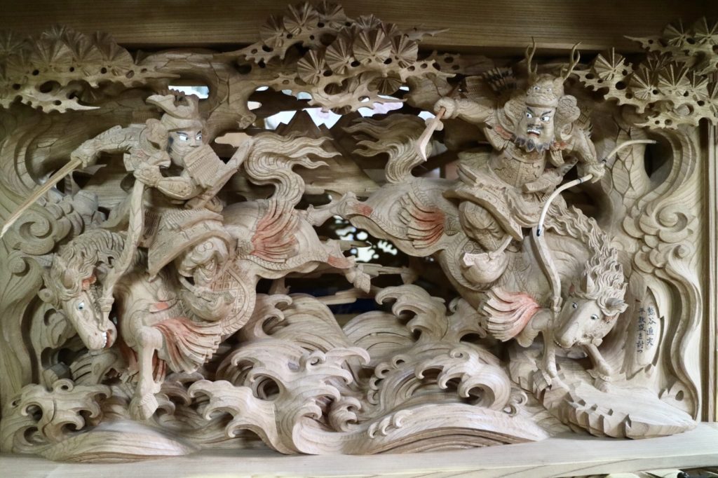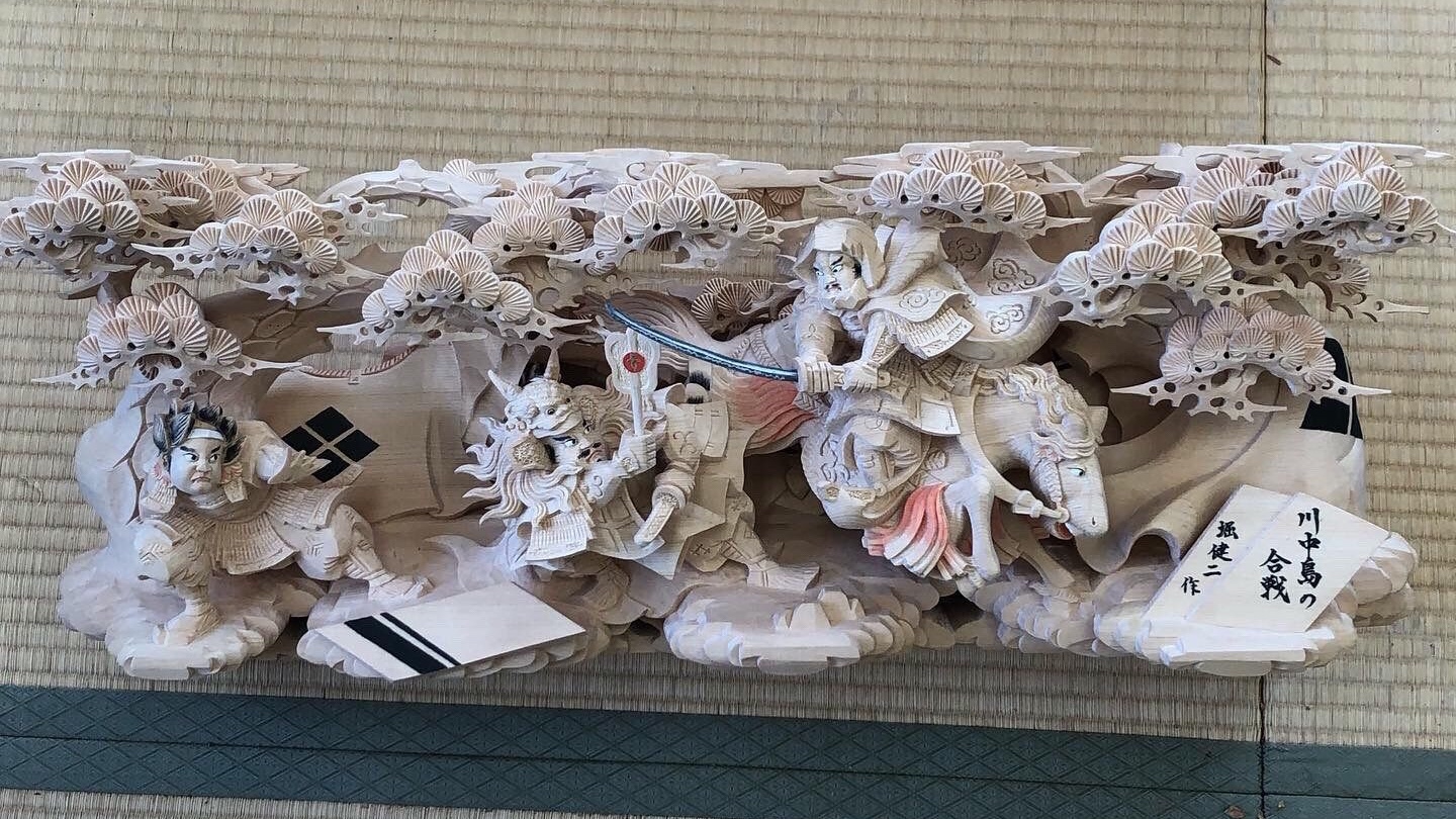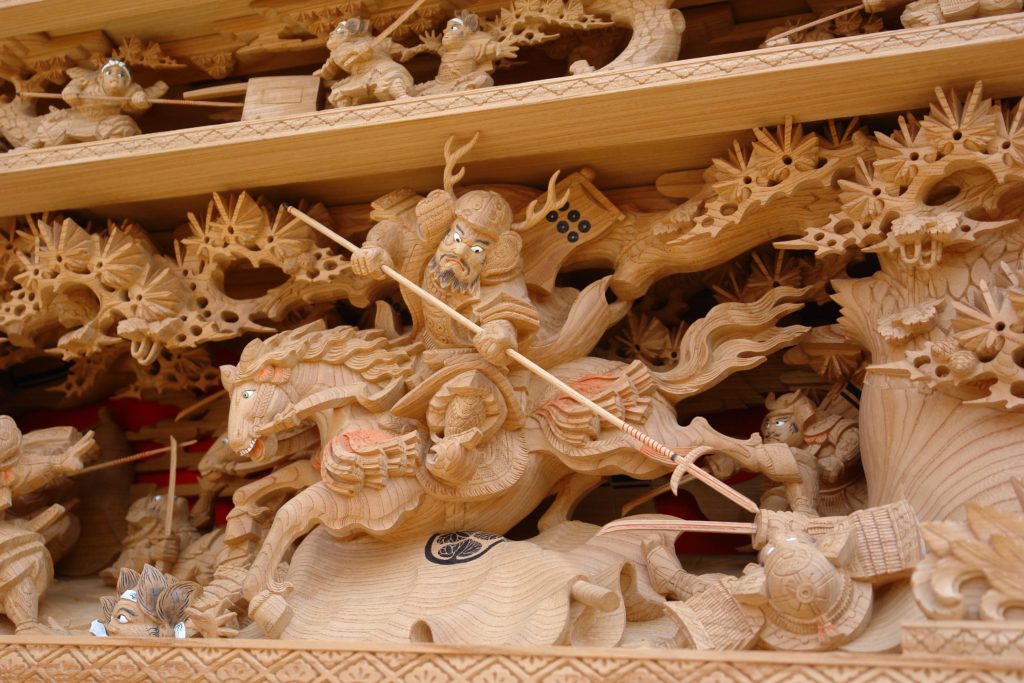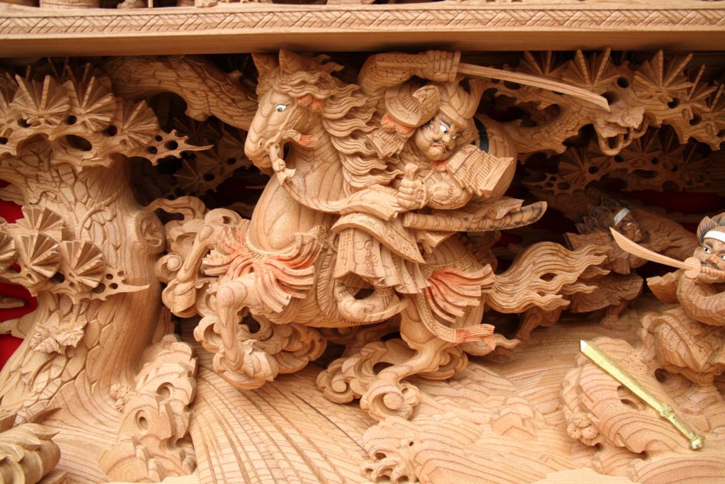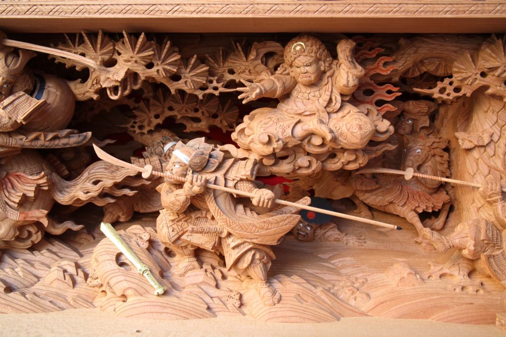 作品紹介 大阪市城東区鴫野 西勝寺 内陣欄間 岸和田市 上松町 左平土呂幕 真田幸村 家康本陣に突入す 泉大津市 豊中町 左平土呂幕 塙団右衛門 樫井合戦 堺市 八田南之町 右平土呂幕 木曽山中合戦 兵庫県 平野區 正面土呂幕 熊谷直実 敦盛呼び戻す 熊取町 小垣外 左平土呂幕石橋山ノ合戦 頼朝朽木隠 泉大津市 元町 正面土呂幕 勇婦巴御前 姫路市飾磨 城南町 挟間 川中島の戦い 真田幸村 岸和田市 流木町 主枡合 七福神レリーフ 姫路 英賀宮町東 露盤 本町南 狭間 右 本町南 狭間 正面 本町南 狭間 後 本町南 狭間 左 元町 獅噛み