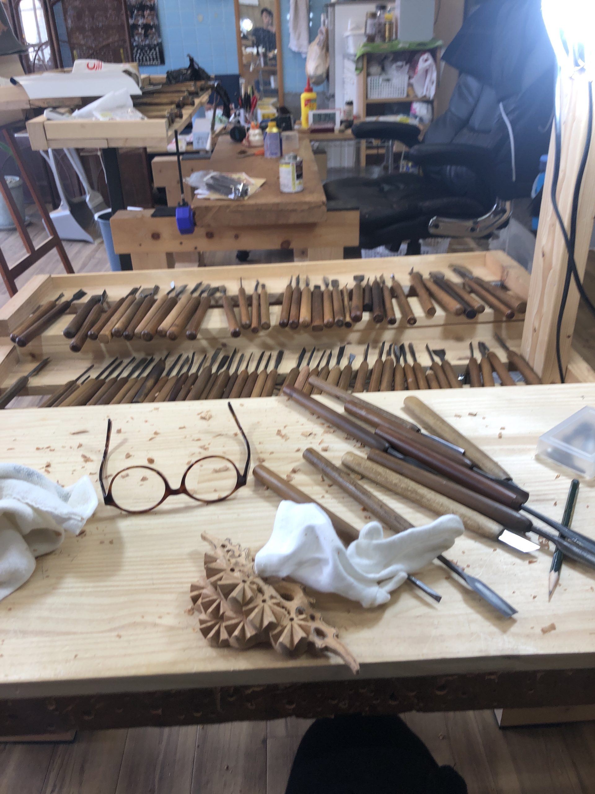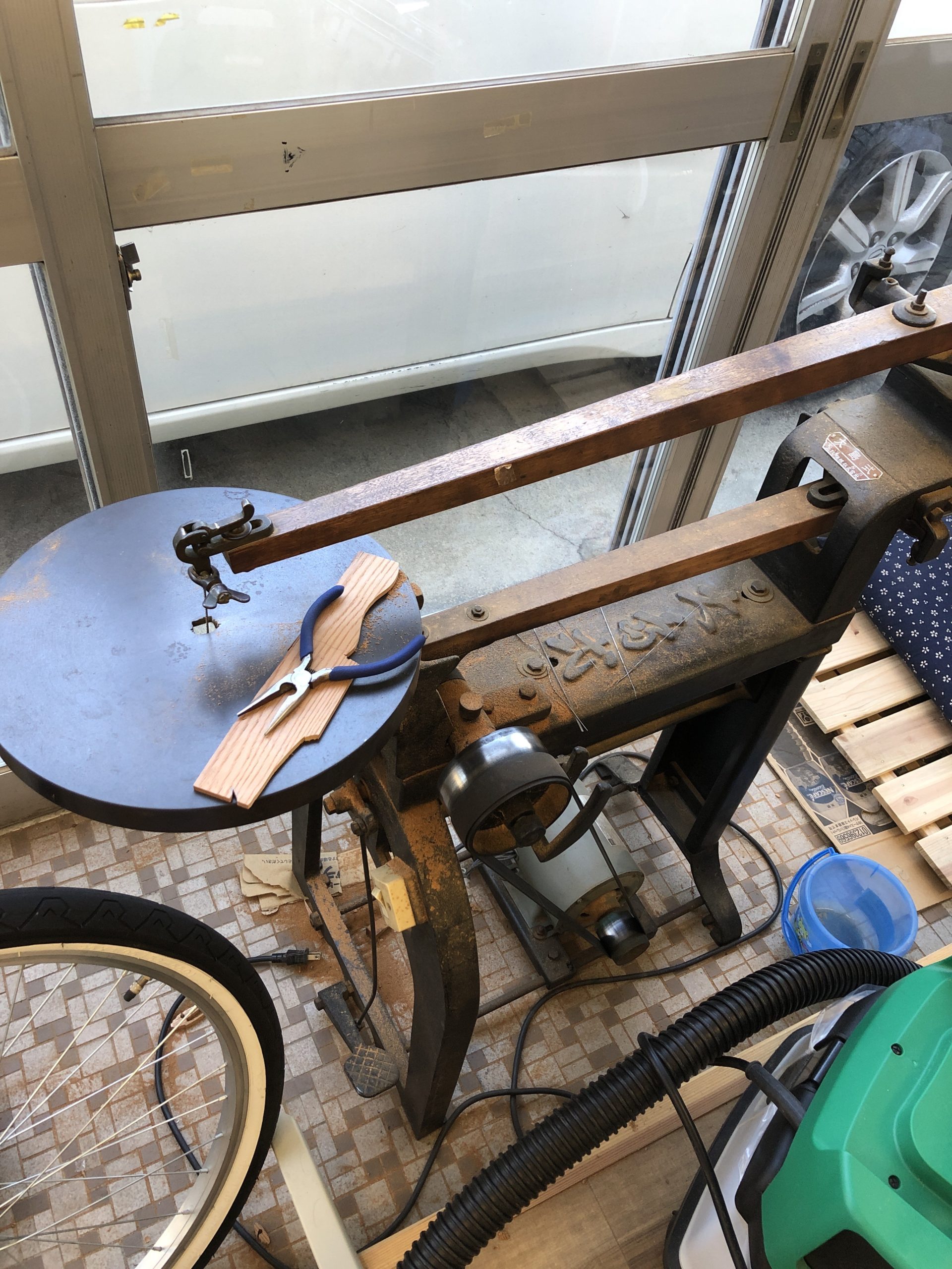 中々古い機械ですが、まだまだ現役です。木彫師の中でも、使ってる人は多いと思います。薄いものは、まずはこれで外型を挽いてしまいます。