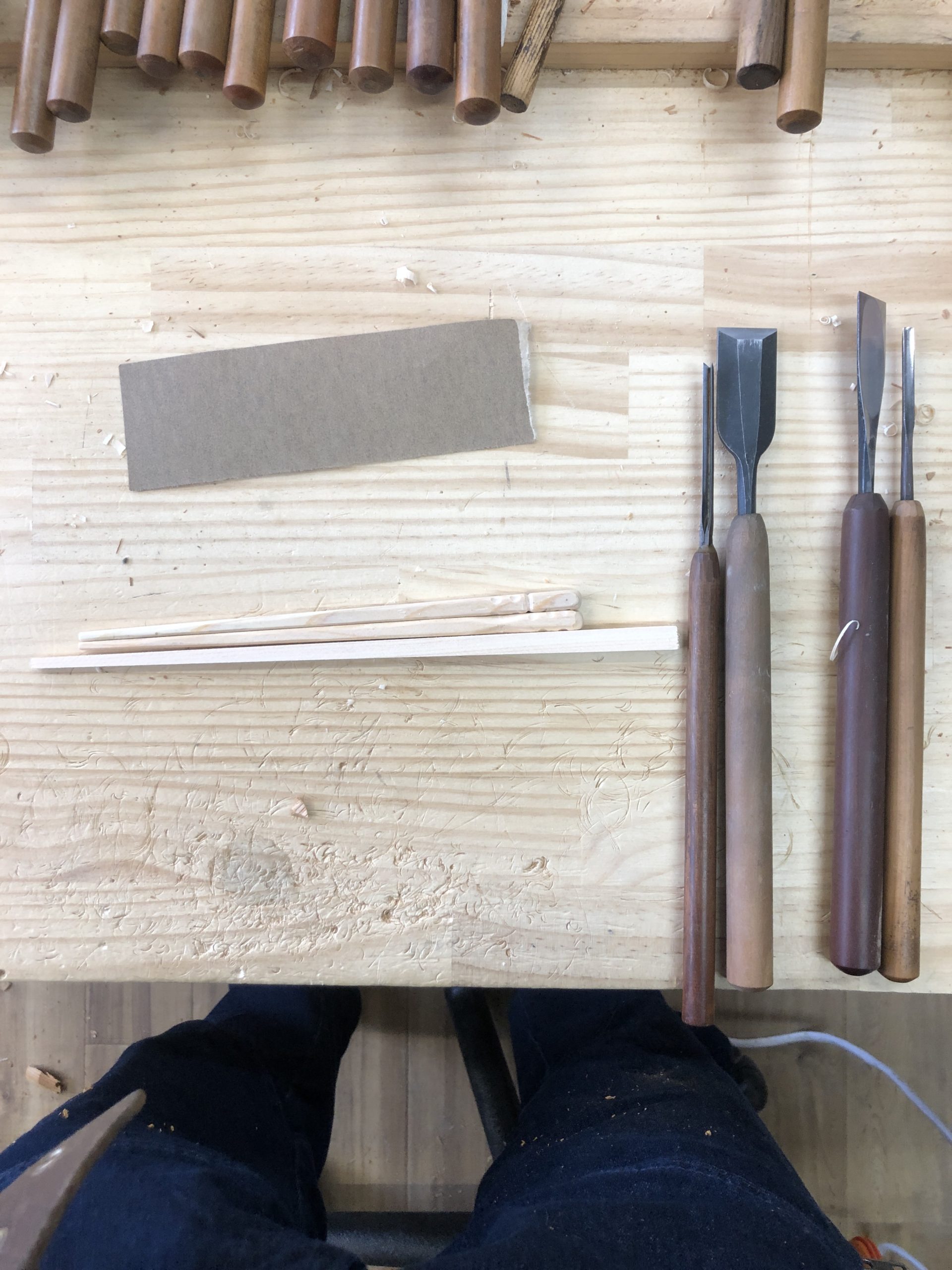 あるところから、彫刻体験ができないかと依頼がありました。出来れば、箸作りがいいという事で、試しに友人に体験してもらいました。1時間位で出来そうなので、採用したいと思います。